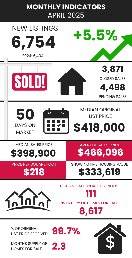 New Listings in the Twin Cities region increased 5.5 percent to 6,754. Pending Sales were up 3.6 percent to 4,498. Inventory levels rose 4.8 percent to 8,617 units.